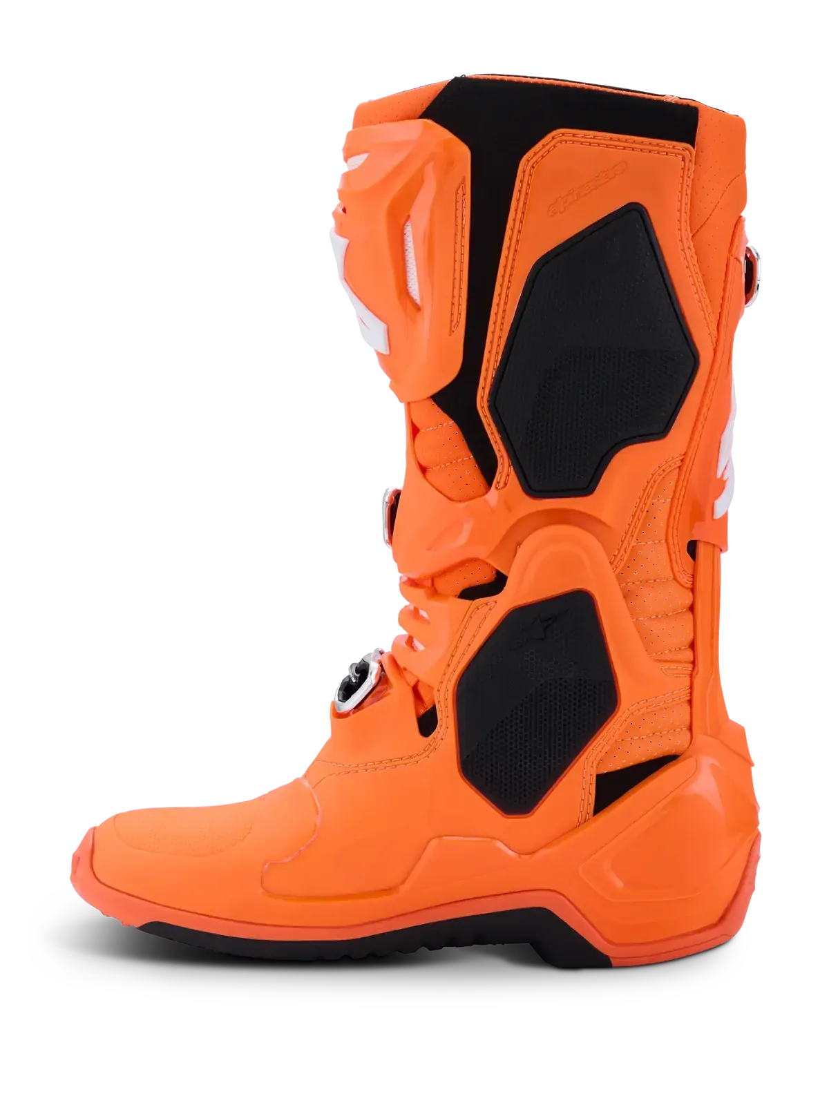 The benchmark boot in Motocross, the Tech 10 Supervented boot further advances the innovations that make it the most technical motocross boot ever. Featuring two inlet ports on the front, a ventilated shinplate, perforated padding and extensive mesh sections, the Tech 10 Supervented has been designed for maximum airflow through the boot’s front and effective heat exchange. The new mesh inner bootie boasts a 3D Higher Spring insole which uses air channels within the sole for optimal levels of ventilation, while also creating a cushioning effect for enhanced levels of comfort. There is also a new sole with an extended honeycomb design for superior grip and feel on the bike’s pegs, especially in wet and muddy conditions.