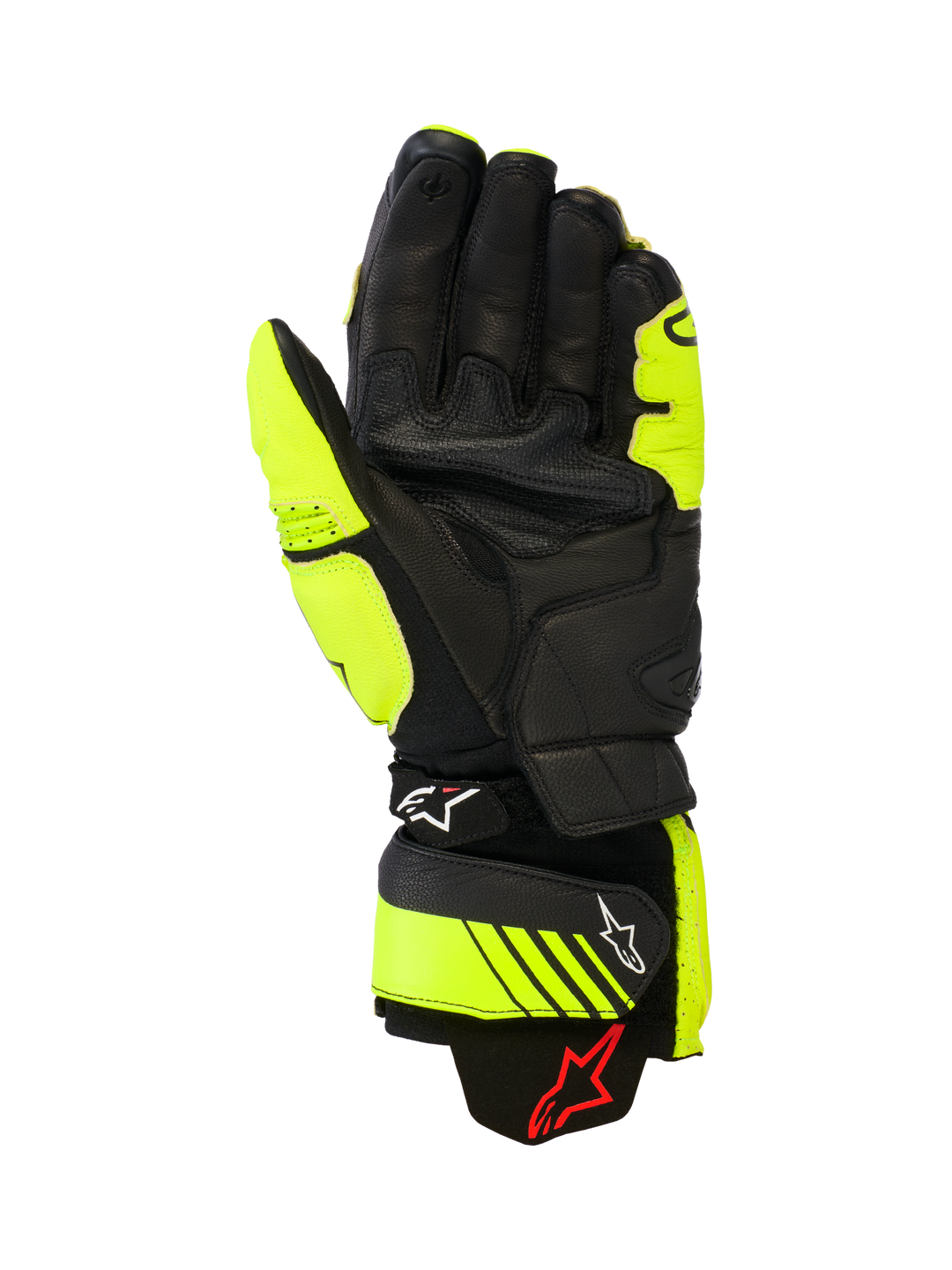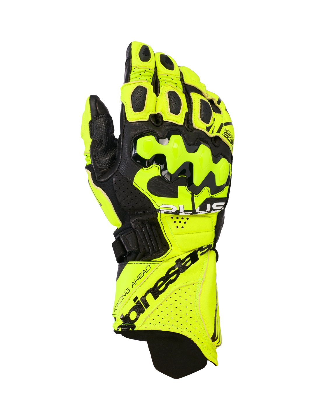 The GP PLUS R v3 Gloves have been optimized for enhanced racing performance and track versatility, and feature new knuckle protectors and a full leather palm and top hand forsuperior abrasion resistance. The aramid stretch fabric cuff, derived from Alpinestars' premium Supertech Racing Gloves, provides a secure and comfortable fit, while the leather palm reinforcement enhances durability and safety. With a pre-curved design and racing-derived finger bridge, these gloves offer optimal ergonomics and control on the track.