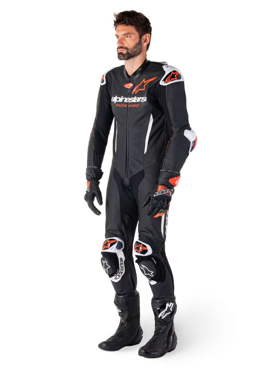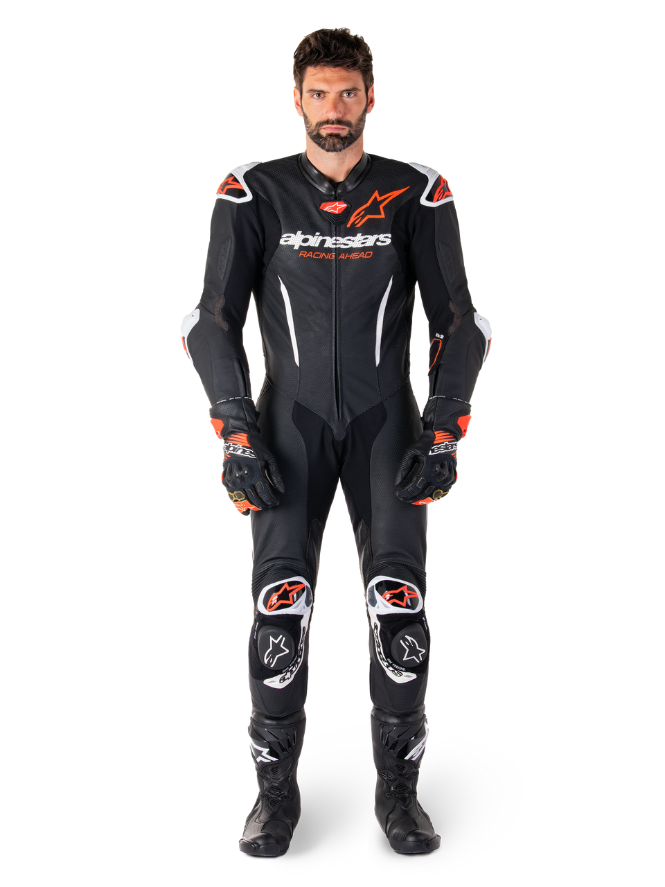 - Pre-curved arms, legs and body, with extended multi-directional leather accordions at the shoulder blades, lower back, and knees for an enhanced ?Race Fit.?