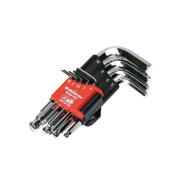 Hex Key Set - Magnetic 9pc 9 piece angled key set with inbuilt magnet Ball end allows improved access to application and up to 25° working angle for increased speed and ease of entry Made from chrome-vanadium steel with polished chrome plated finish Supplied in a hinged storage holder Style: Hex Sizes: 1.5, 2, 2.5, 3, 4, 5, 6, 8, 10mm