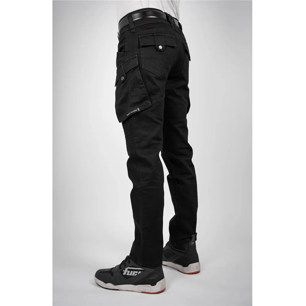 The Easy-fit, combat-style Jackal features comfort-enhancing stretch panels on the knees along with deep side and rear pockets with secure press-stud closures. Using the Covec?? Oneskin jet black denim shell to blend urban style with utilitarian practicality, and with the reassurance of RE ZRO?? level 1 hip and knee armour, riders of all genres will enjoy the comfort and safety of the AA-rated Jackal.