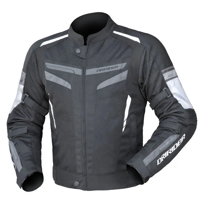 The abrasion resistant mesh allows the jacket to have a great level of flow through ventilation in hot conditions but is strong enough to keep together in the event of an emergency, particularly when combined with 600D polyester which has an exceptionally high tensile strength but enough flexibility for comfort. CE rated elbow and shoulder armour helps protect your limbs, with the high density back protector providing spinal protection. All armour can be upgraded to CE Level 2 for maximium protection. Pre-curved arms provide comfort when in a forward riding position, with stretch panels in the chest and arms allowing movement on the bike. A neoprene collar prevents rubbing on your neck when looking around or performing shoulder checks. The Reissa waterproof/breathable liner will keep the rain from penetrating through the jacket fabric, with the 8000/5000mm rating a suitable rating for most Australian climates. This liner is easily removed and stored for warmer, dry weather, revealing a mesh comfort liner. ? Outer shell: Maxtex 600D Polyester and abrasion resistant mesh ? Reissa waterproof and breathable removable liner (8,000mm/5,000mm) ? CE armour with Hi-Density back protector ? Mesh comfort liner ? Power stretch chest panels ? Action stretch in shoulders and elbows ? Pre-curved arms ? Neoprene stretch comfort collar ? Reflective print to increase night-time visibility ? Arm and waist adjusters for a tailored fit ? 2 Outer and 2 inner pockets ? Connection zip for pants ? MAX Zips