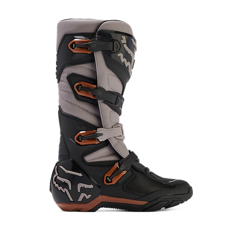 These boots provide support and protection in both track and Offroad situations, with the TPU shin plate, ankle, toe, heel caps, burn guard, and calf guards designed to provide the essential coverage you're after. The new, adjustable four-buckle closure system offers a secure and locked-in fit you can rely on. In addition, the internal composite insole board delivers stability and support from toe to heel and side-to-side on the pegs, while our exclusive Fox PosiTac?? rubber compound provides improved durability and unprecedented grip on the outsole, Best of all the Comp can be resoled, extending the life of these essential performance motocross boots.