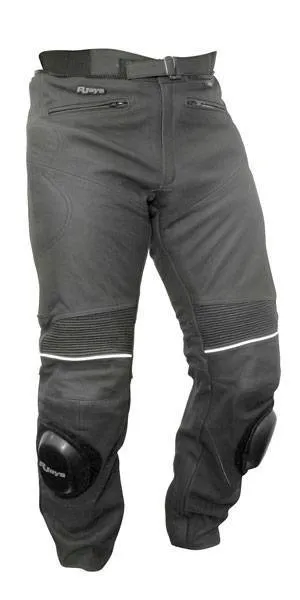 A beautiful matte black finished leather, double stitched pant! 100% A-Grade drum dyed race weight leather CE Approved, moulded plastic reinforced adjustable knee/shin armour Padded hips Knee Sliders Stretch Lycra laminated with Terry Towel inserts behind the knees and down the leg for added comfort and cooling Zip in base of leg opening Stretch panels across back of waist, along tops of knee & down the sides of pants 3M Scotchlite reflex material highlights Zip to pants 2 pockets