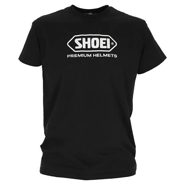 Black cotton t-shirt with Shoei logo on the front and rear neck