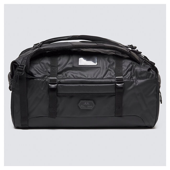 Product Details - 50L - 56cm L*29cm W*32.5cm H - 2 handles that double as padded shoulder straps - Sternum strap to help disperse weight - Large organizational compartment with zip opening - Zip side pockets - 4 side handles - 2 lateral buckles for adjustability - External laser waterproof small pocket - Embossed Oakley Ellipse logo on front Material Details - 100% Recycled Polyester made from post - consumer plastic bottles that is lightweight and breathable - Ripstop water resistant fabric provides outstanding durability Material Composition - 100% Recycled Polyester